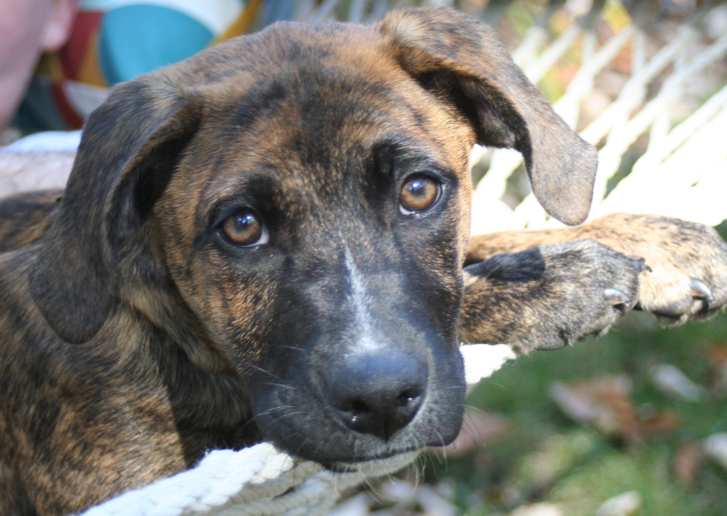 Now she is healthy, 40 pounds, somewhere around 6 months and we think she’s at least part plott hound.